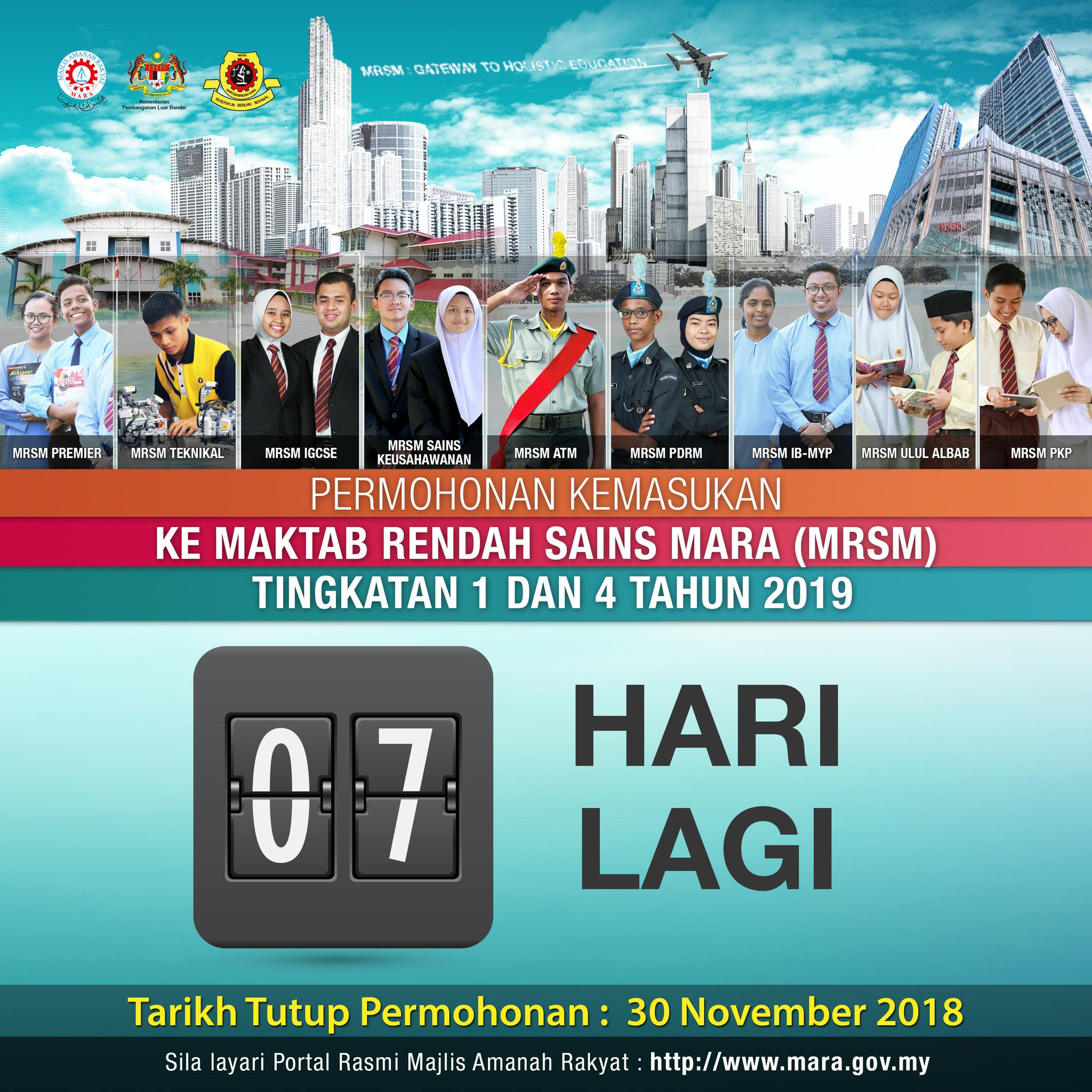 Majlis Amanah Rakyat On Twitter Countdown Permohonan Kemasukan Ke Mrsm Tingkatan 1 Dan 4 Tahun 2019 Tinggal 7 Hari Lagi Tarikh Tutup Permohonan 30 November 2018 Layari Https T Co 0psghleagq Untuk Memohon Mara Kplb Mrsm